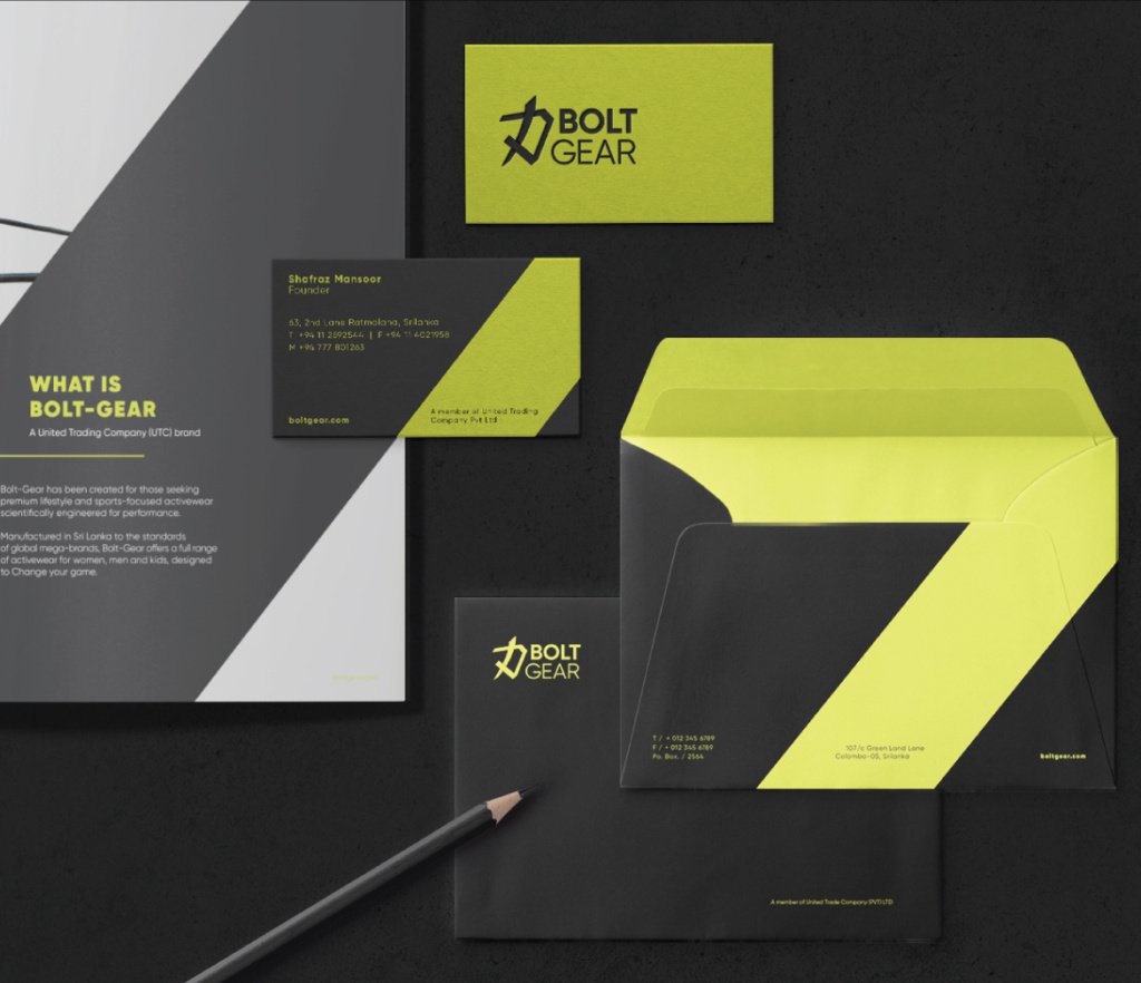 Bolt Gear is an affordable but high-quality fitness/sportswear brand launched in Sri Lanka. The brief was to enhance the identity suite of the brand, with a visual language reflecting an international fitness and sportswear brand with a strong, aspirational lifestyle element.