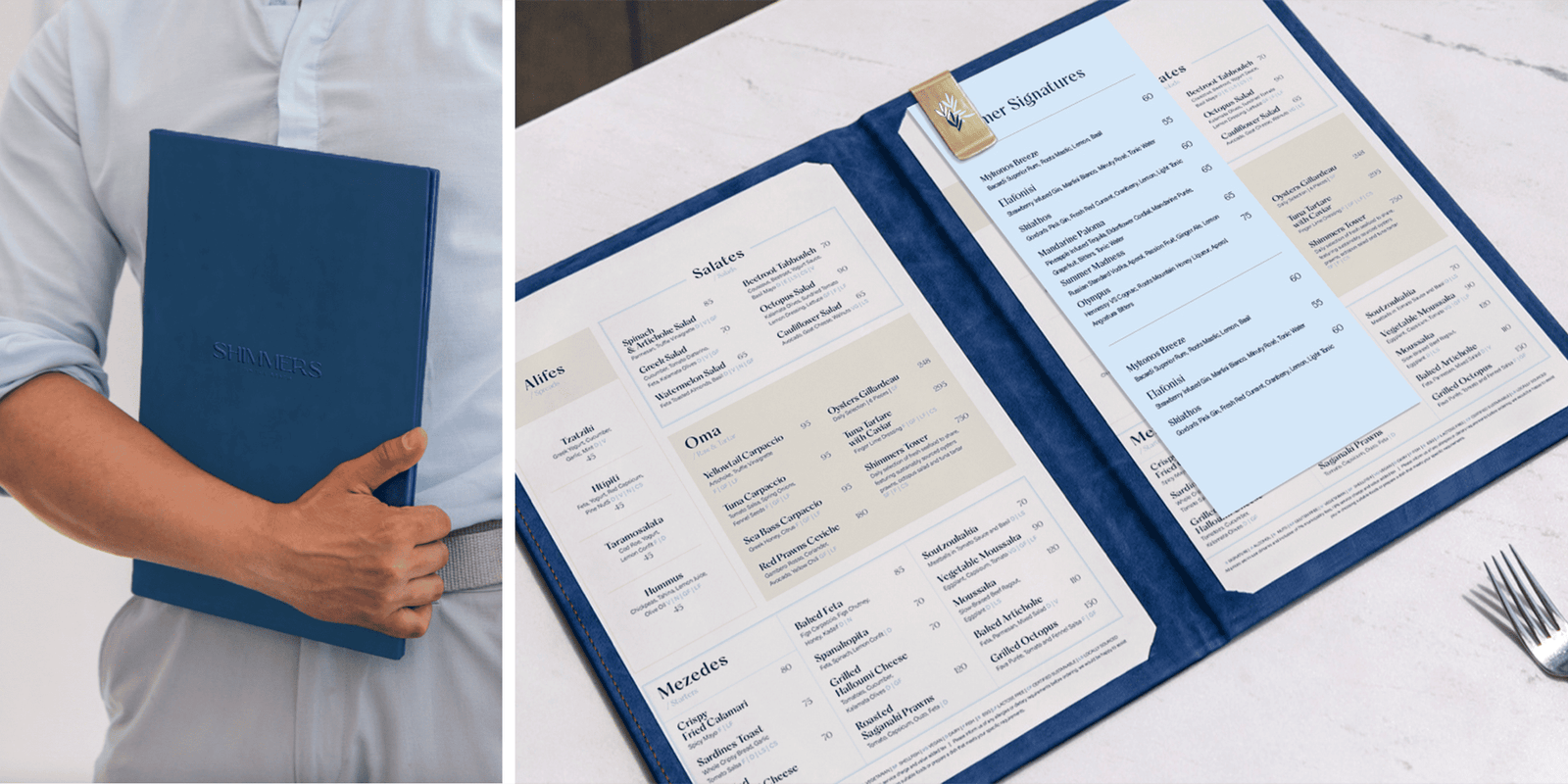 The brand refresh for Shimmers brings its seaside spirit to life with a luminous new colour palette and a newly crafted logo that feels both contemporary and timeless. A renewed visual language ripples gently across every touchpoint—collateral, uniforms, OS&E, and interior details—creating a cohesive rhythm that mirrors the ebb and flow of the shoreline. The result is an identity that feels radiant, effortless, and deeply connected to its coastal setting.