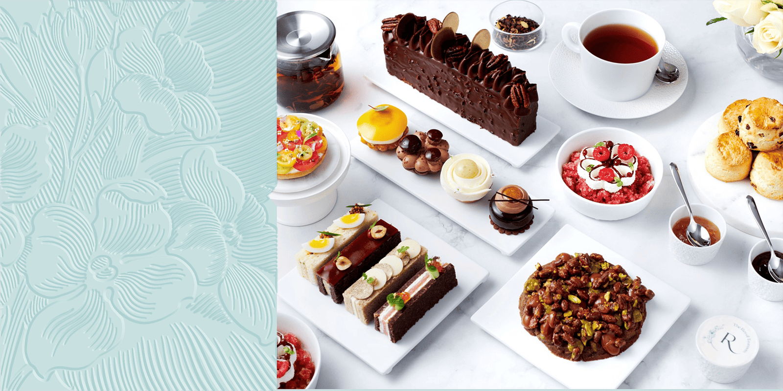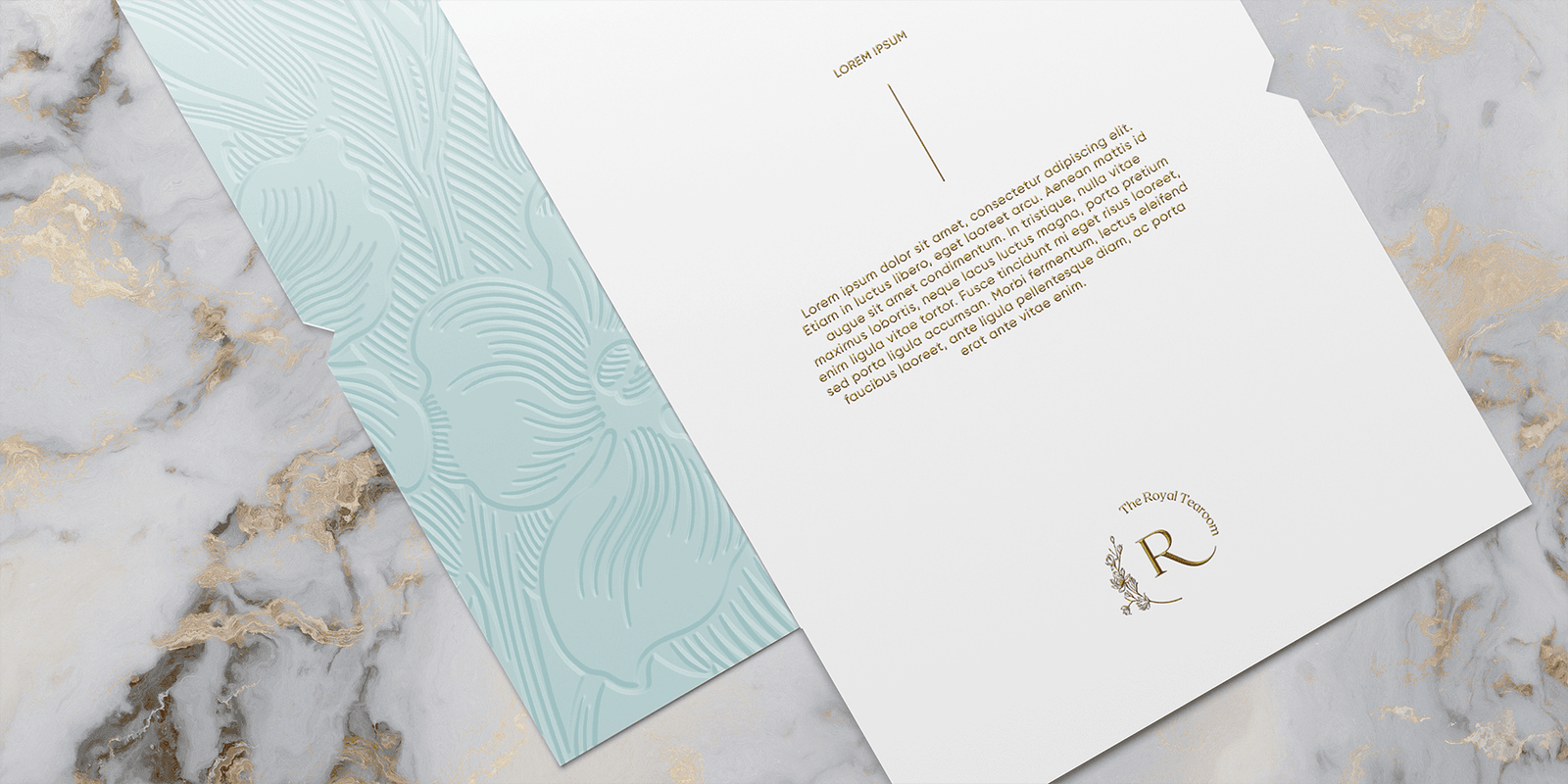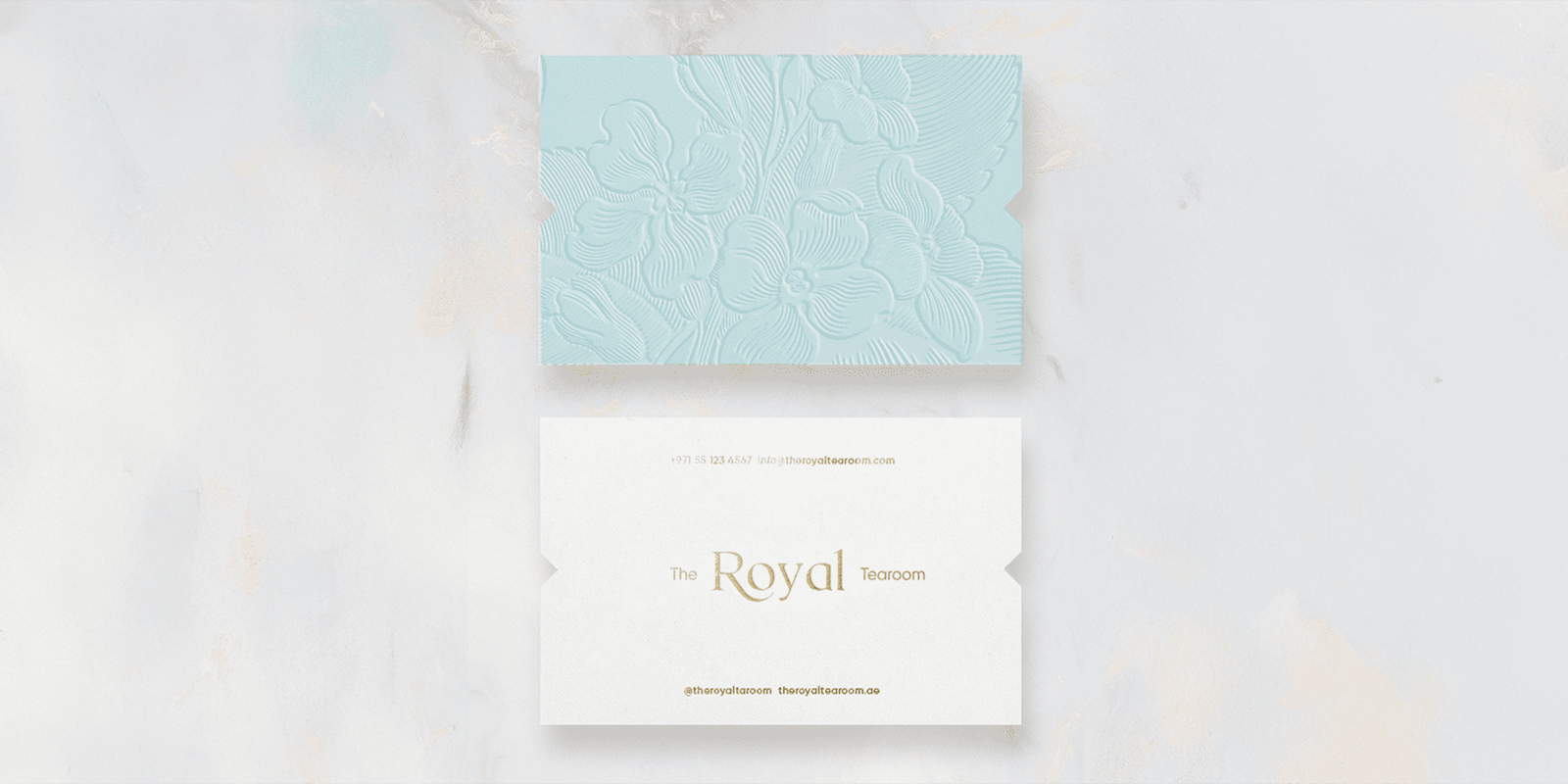 The identity was designed to express refined luxury and modern elegance. Soft powder blue paired with metallic gold, embossed floral patterns, and a delicate monogram come together to evoke calm sophistication and the artistry of premium tea culture. The result is a cohesive visual language that feels serene, elevated, and perfectly in harmony with the grandeur of Atlantis, The Royal.